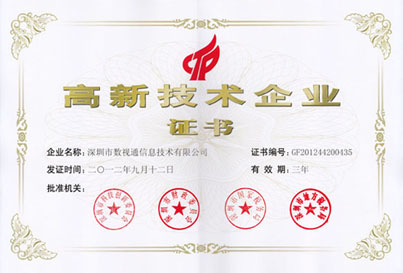 近日,我司顺利通过2012年国家级高新技术企业复审工作,再一次荣获了由深圳市科技创新委、深圳市财政委员会、深圳市国家税务局和深圳市地方税务局联合颁发的《高新技术企业证书》。