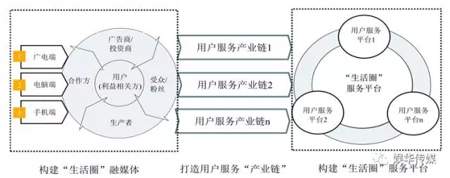 在商业模式上,地方广播电视台的转型升级就是从“做节目、卖广告”的传统媒体经营模式转型为“聚用户,做服务”的用户服务产业链经营模式。具体来说,地方台的用户服务产业链经营模式就是,依托节目“入口”,聚集本地用户,聚焦细分产业,提供贴身服务。