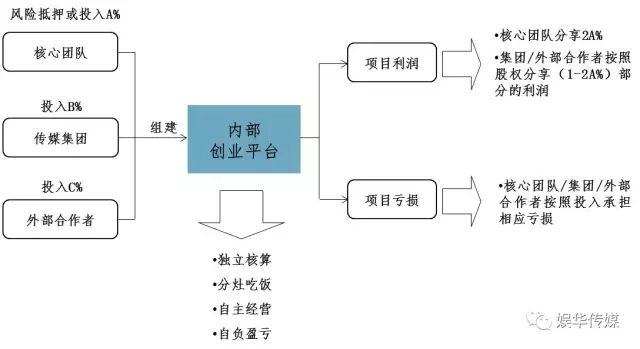 根据改革经验,建立“内部创业”机制最容易操作的方法。在搭建员工层面的内部创业平台基础上,地方台对核心团队实行经营风险抵押或参与投资的“内部创业”机制,对创业平台实行“独立核算、分灶吃饭、自主经营、自负盈亏”管理机制,项目团队需承担一定的项目经营风险,在项目盈利时按一定比例分享项目经营利润。