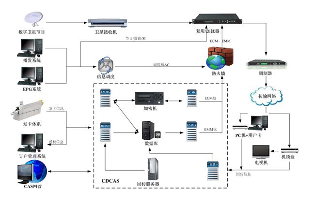 ·集成了电子节目指南生成系统、节目管理系统、用户管理系统、机顶盒接收系统,以及多种独立的智能卡发行与管理系统
